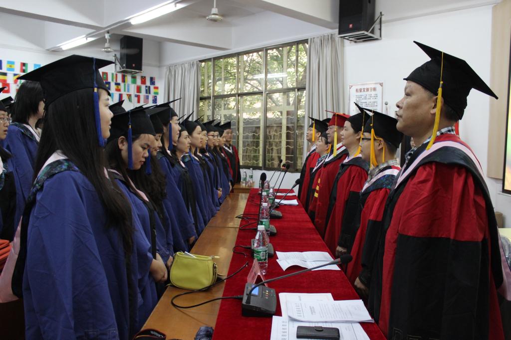 6月18日上午,外国语学院于模拟联合国会场隆重举行了2015届毕业生学位授予典礼。英国上市公司365校长文格波、外国语学院院长戈玲玲、外国语学院党委书记王文涛、外国语学院副院长何固佳、外国语学院党委副书记陈彬、外国语学院副院长蒋天平及研究生导师代表贾德江、蒋显文、程静出席典礼,外国语学院2015届全体毕业生参典礼。典礼由外国语学院党委书记王文涛主持。