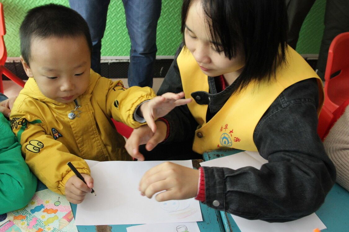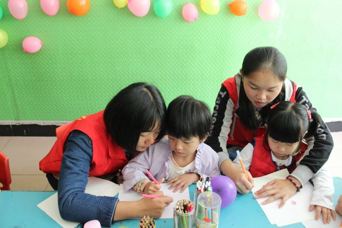 此次活动安排我院志愿者分别在康复中心三个班中进行。每个班级里所进行的陪伴方式各不相同,志愿者们也为孩子们带去丰富多彩的小礼物和各种各样的零食。同时,志愿者们除了为孩子们准备了才艺表演,还安排了丢手绢、折纸和画画等精彩的游戏。在中班里,志愿者带领着孩子们吹气球,并且播放温馨的儿歌来活跃气氛。孩子们褪去开始的沉默腼腆,渐渐对志愿者敞开心扉、展露笑容。紧接着,志愿者与孩子们一起到活动室玩丢手绢、老鹰捉小鸡等游戏,并与孩子们一同作画,交流问候。活动的最后,志愿者们给孩子们送上了准备好的小礼物和真挚温暖的祝福,并与康复中心的儿童老师合影留念。