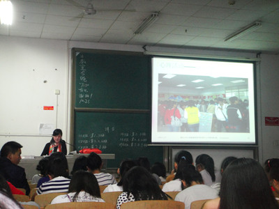 讲座开始,王老师与同学们进行了互动,了解了新生们在大学的心理感受,并为他们答疑解惑,疏导心理问题。随后,她向同学们介绍了“朋辈心理辅导”的职责,希望各班班干部和寝室长起模范带头作用,主动关注同学的心理健康问题,及时交流,热心帮助,并带动全体同学加入到朋辈的行列中。王老师指出,一个朋辈工作者的角色定位对己应是学习者、实践者和自助者,对他人应是信息传递者、宣传者、助人者。然后王老师又以生动形象的生活实例讲解朋辈工作者的职责是学习相关专业知识,开展帮扶工作和及时反映班上同学的心理情况等。在她的讲解下,同学们充分意识到“认识自己、整合自己、发展自己”的重要性,以及朋辈“助己自助、助人自助”的意义。在讲座中,王老师以于丹老师的关于“怎样认识自己”的讲座视频结束了这场有意义的心理辅导讲座。讲座过后,高年级的心理委员和朋辈心理健康工作者交流了自身的工作经验。