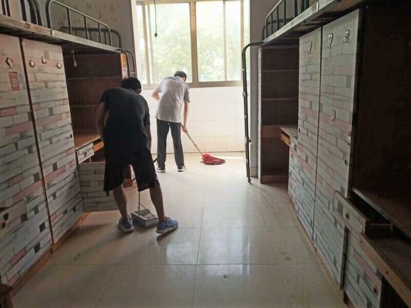 迎新工作将由8月22日持续至26日。据悉,本届新生寝室安排于雨母校区笃行园一栋与尚学园四栋,共计367间寝室。由于寝室在暑期闲置近两个月,准备工作的第一步,从卫生整理开始。32名参与人员携带卫生工具对地板、桌面进行清洁,学院宿管部干事对迎新工作进行有效监督,19级辅导员王星对工作人员表达亲切关怀。