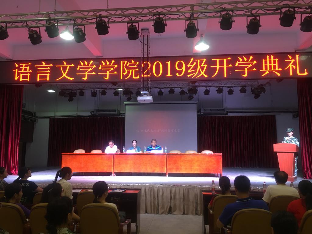 8月28日上午9点,语言文学学院2019级新生开学典礼暨入学教育在雨母校区新食堂四楼隆重举行。开学典礼和入学教育分别由学院党委副书记陈彬和学工室主任王星主持,学院党委书记戈玲玲、副院长蒋天平、副院长刘彬、教务办主任全华凌、中文系主任钟新果、日语系主任吴波、翻译系主任朱向明、全体辅导员、新生班主任和班主任助理、团学会干部共同出席。2019级全体新生参加开学典礼。