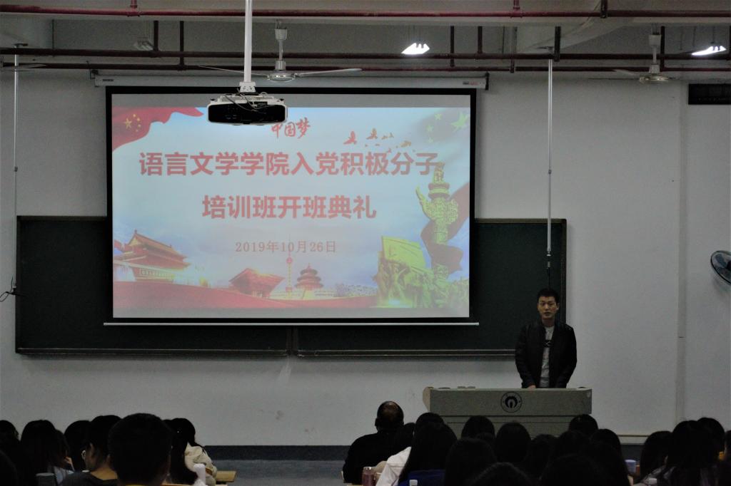 10月26日上午8时30分,语言文学学院2019年入党积极分子培训班开班典礼在雨母校区第一综合教学楼101室举行。语言文学学院党委副书记陈彬、学工室主任王星、辅导员杜百知出席了本次开班典礼,典礼由杜百知主持。