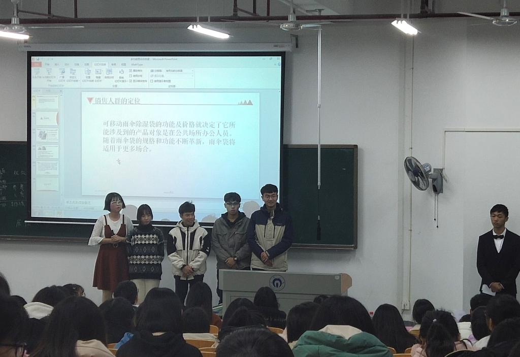 本次比赛环节分为项目PPT展示和团队答辩。各组参赛选手按顺序依次上台展示,发言流畅,条理清晰。选手们从市场环境、社会需求、行业竞争等方面进行分析,并运用调查数据来介绍项目实施背景,接着又从人才、资金、优劣势等方面详细讲解项目的具体实施战略,同时也着眼于项目线上与线下的宣传、推广和后期运营等,精彩的展示令在场观众叹服。