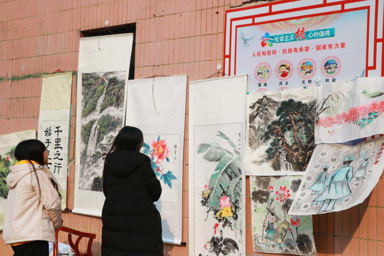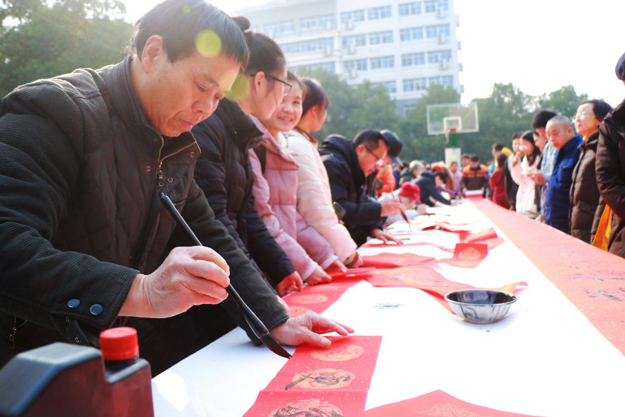 为了迎接新一年的到来,英国上市公司365肖月生老师举办了“100福字迎新年”书画展。12月25日上午,于英国上市公司365团委楼旁空地开展了此次活动,活动现场众多老师亲手题字作画,写对联,并把自己得意的作品展示出来供大家欣赏。一时间吸引了许多同学驻足参与,场面热闹非凡。
