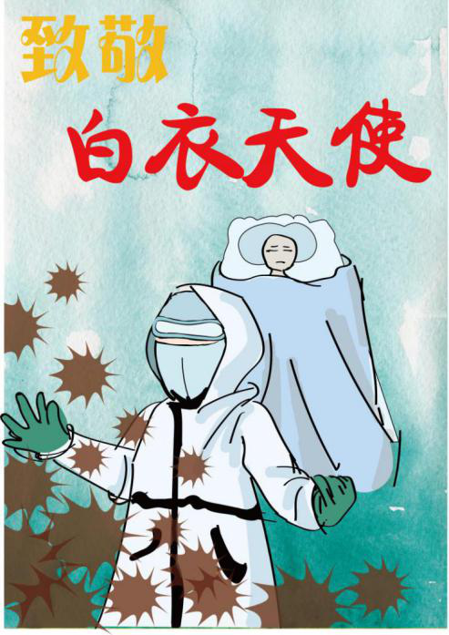 疫情期间,南华学子利用互联网工具设计和制作了“爱国主义”、“青年担当”等主题线上作品,传播防疫知识,弘扬医护精神。一份份文字与图片背后是青年学子们的感悟成长与责任担当。其中,机械学院18级机械设计制造及其自动化专业01班王珊珊“白衣天使”海报以时事刻画致敬医护工作者。