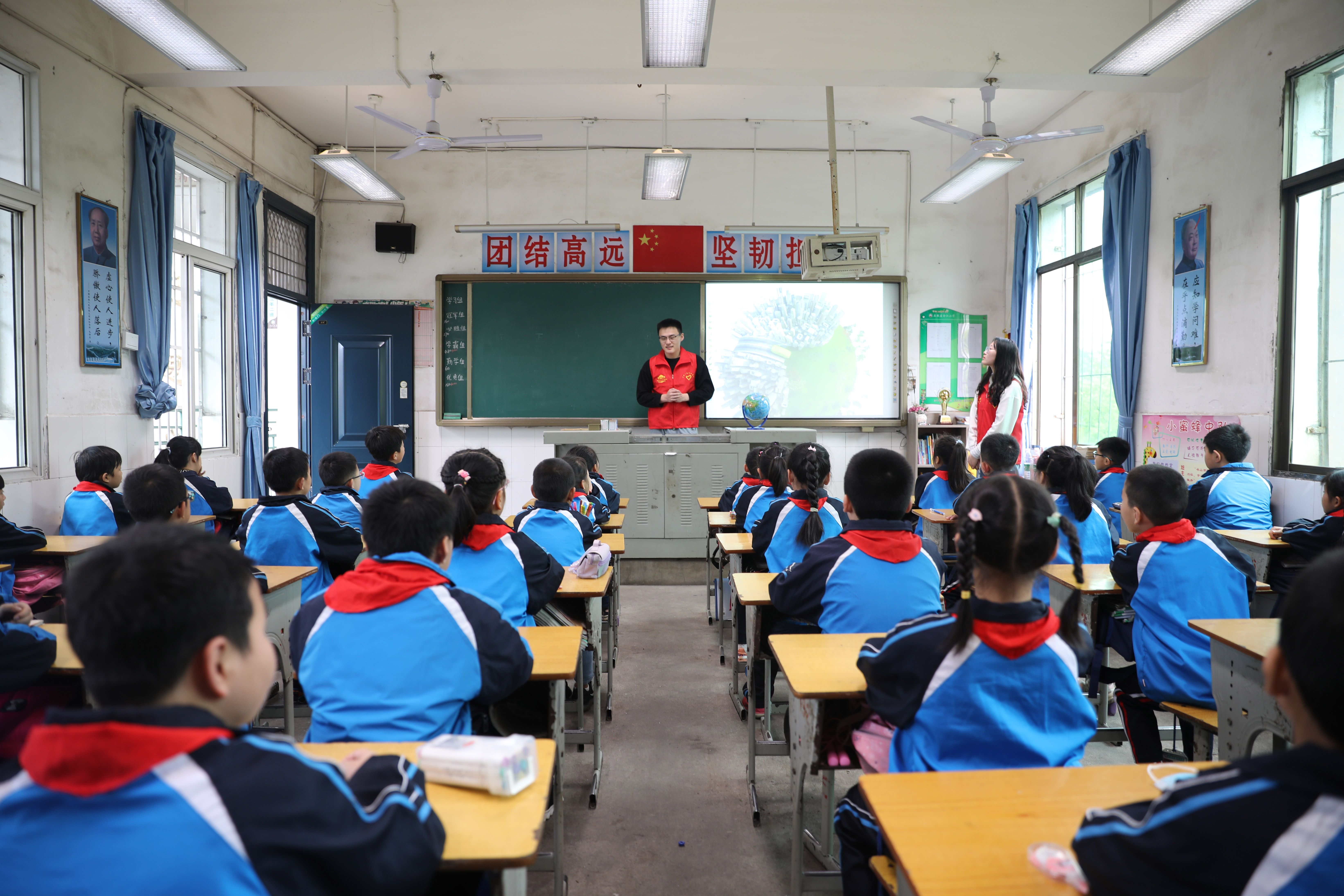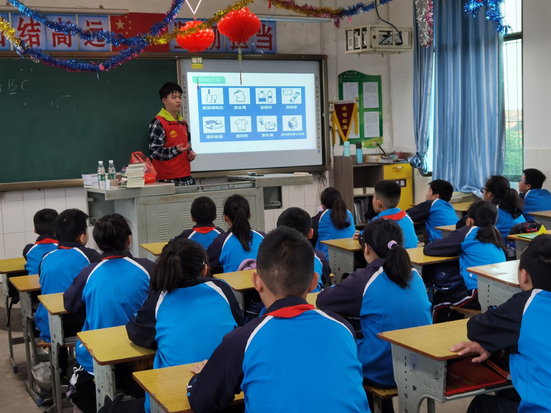 活动前夕,土木青志提前对干事们进行相关培训,同时,积极组织各班募捐书籍,用书本传递爱心,从而提高孩子们的阅读量。活动当天,负责人清点人数无误后前往活动地点,并联系合江小学老师,由老师带领前往宣讲班级。每班以一名主讲人和两名助教为一组进行宣讲,主讲人根据事先准备的PPT内容进行宣讲,助教在旁积极协助配合,确保宣讲全程始终有序进行。宣讲过程中,助教与主讲人协作进行垃圾分类小活动、有奖知识竞答、描绘美丽地球等互动,增加活动的趣味性,寓教于乐,在场的同学们均踊跃参与互动,气氛高涨;在趣味活动的同时,负责人向小学生普及垃圾分类的相关知识以及垃圾分类的重要性,并呼吁同学们要从生活中的小事做起,学会分类垃圾,为保护环境奉献自己的一份力量。