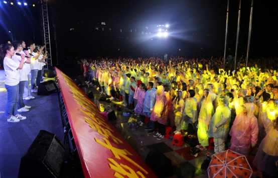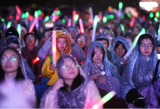 观众雨中观看晚会