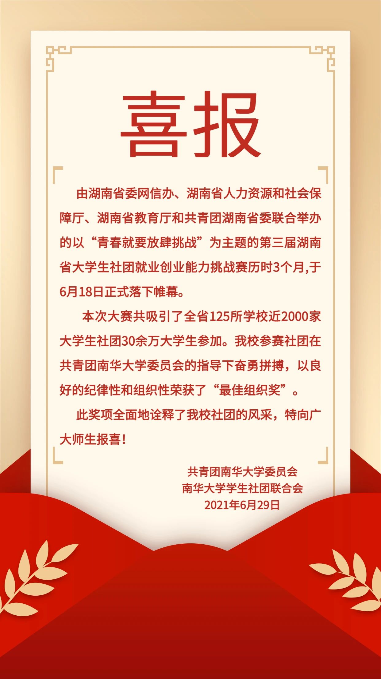 喜报——英国上市公司365在第三届湖南省大学生社团就业创新能力挑战赛中荣获“最佳组织奖”!