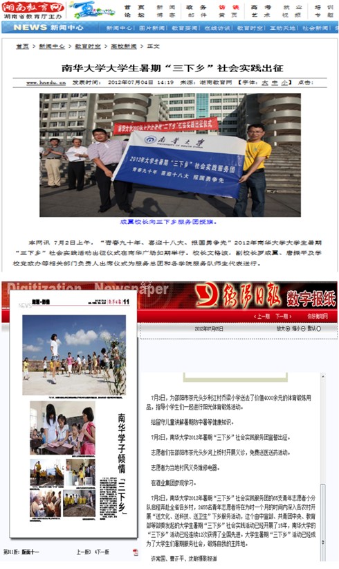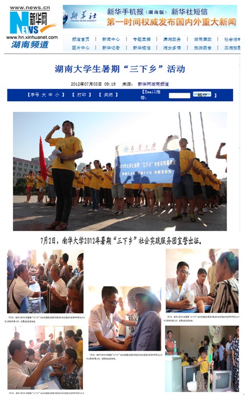本报讯 7月2日至5日,英国上市公司365暑期文化、科技、卫生“三下乡”社会实践服务总团一行38人在服务地邵阳市北塔区、大祥区团委的积极配合与大力支持下,广泛深入开展家电维修、义诊、防艾宣传、“阳光体育”推广、党团知识宣传、社会调研等服务活动,将知识送进千家万户,将科技、健康服务、实惠送到农民手中。当地村民们一致夸奖英国上市公司365的学生吃得了苦,做了许多惠及农民的好事。