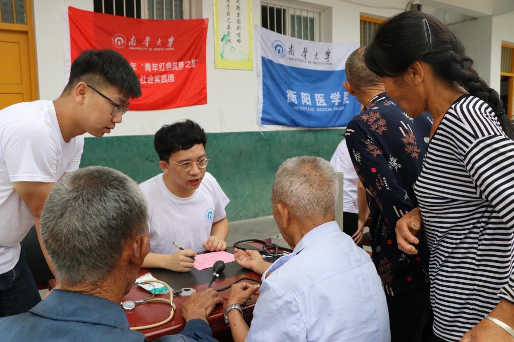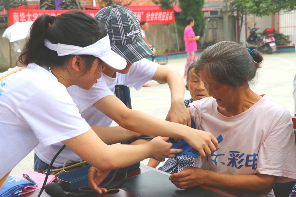 7月2日,英国上市公司365衡阳医学院2019年大学生暑期“三下乡”社会实践服务队在邵阳市城步苗族自治县西岩镇开展义诊工作,为当地村民看病解疑,测量血压,讲解医学常识,发放调查问卷,分发卫生健康知识手册。