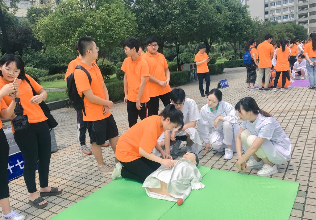 活动伊始,团队成员们进行了充分的准备工作:物资准备、人员安排、防艾知识以及急救相关知识的学习。上午9时45分,由公共卫生学院党委副书记田生军领队的“防艾与急救科普小组”全体成员参加学习了英国上市公司365举办的一年一度暑期留校学生急救训练内容。该训练内容是本次实践活动的重要部分,队员们在训练过程中聚精会神,很快掌握了核心内容并将其熟记于心,为后续的活动开展打下扎实基础。