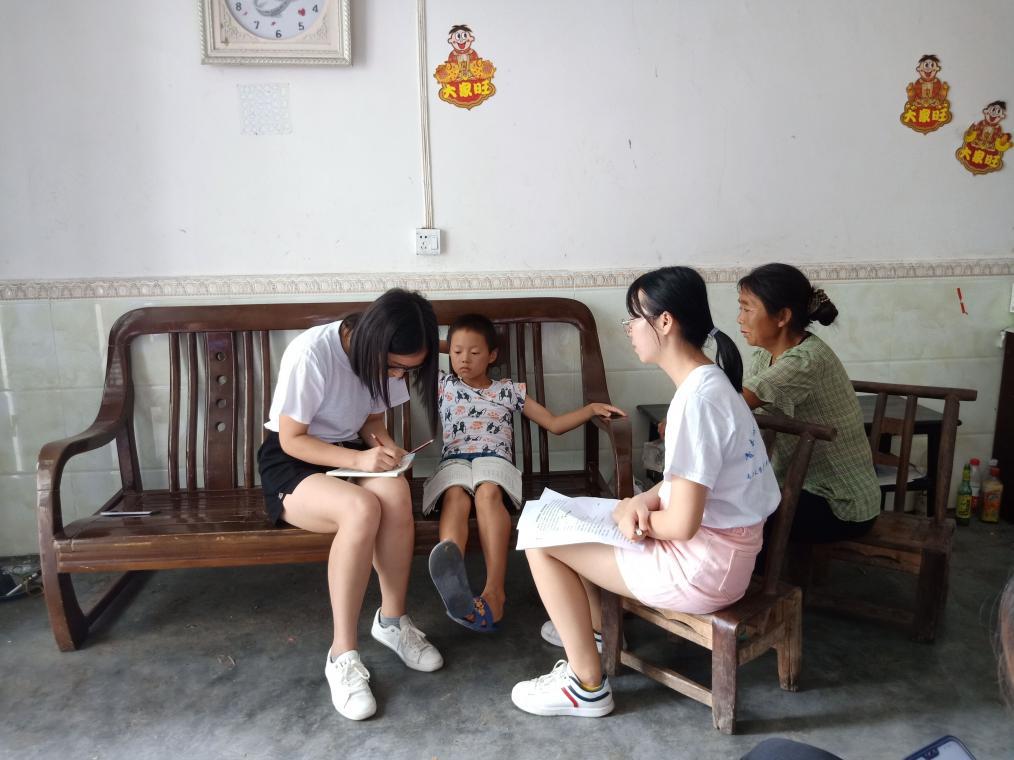 经调查,长田村大部分青年人外出务工,许多孩子均为留守儿童,在与儿童交流的过程中,团队成员发现,这些儿童的性格内向,与人交流困难,心理健康、性格形成存在一些问题。团队成员在进行义务教育和教育资助政策宣传的同时,也积极与家长们进行交流,建议他们要加强与孩子的交流与互动、鼓励孩子多交朋友,以帮助孩子们健康成长。